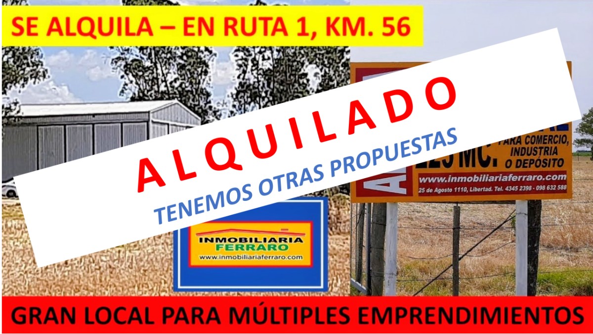 SE ALQUILA - EN RUTA 1, KM. 56 - AMPLIO LOCAL MULTIUSO. FRENTE A RUTA