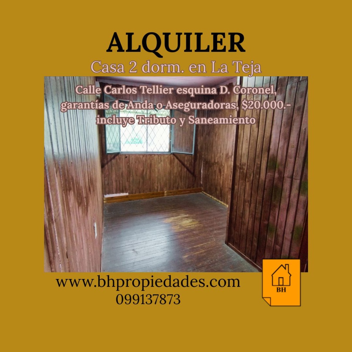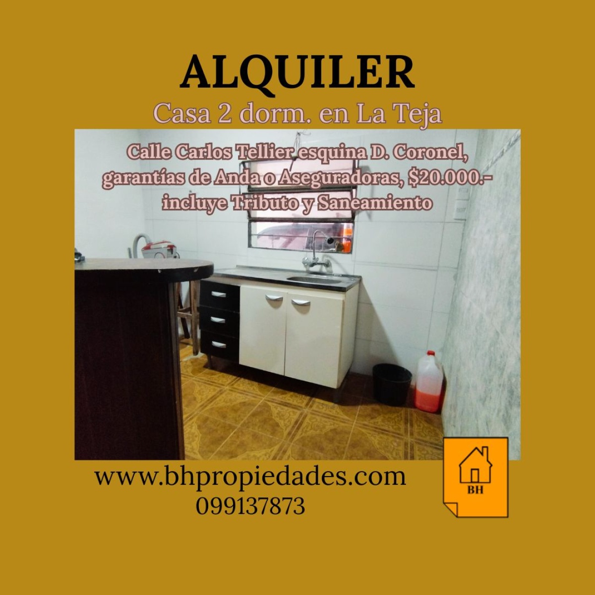 Alquiler de casa en dos plantas, 2 dormitorios, baño, cocina integrada a living comedor con estufa a leña, patio . Precio $ 20.000- incluye Tributo Domiciliario y Saneamiento. Garantías de Anda o Aseguradoras.