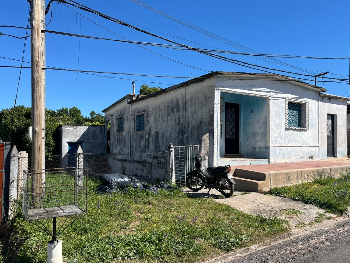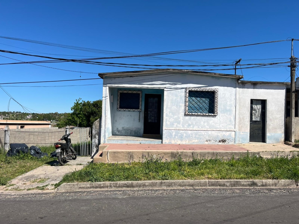 Compuesta por dos dormitorios , star , cocina comedor , baño ( toda la casa con pisos de mosaicos y techos de hormigón ) , patio (piso de hormigón )con churrasquera y fondo con entrada para vehículos con galponcito o depósito y además dos habitaciones contiguas a la casa con techos de hormigón , con entrada independiente desde la calle y comunicadas entre sí por el fondo ( tipo apartamento independiente ) .