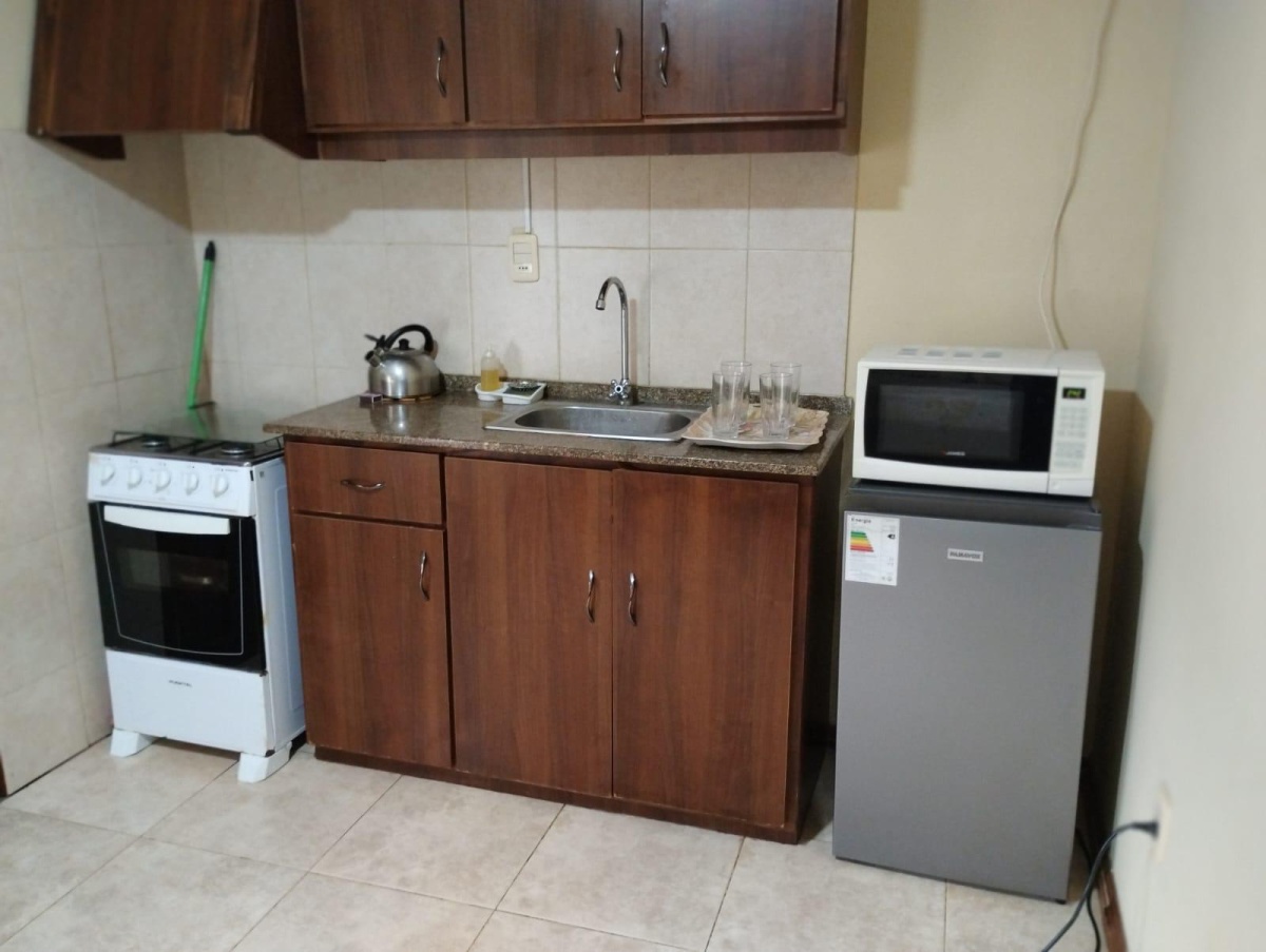• Kitchenette con heladera, cocina y vajilla completa