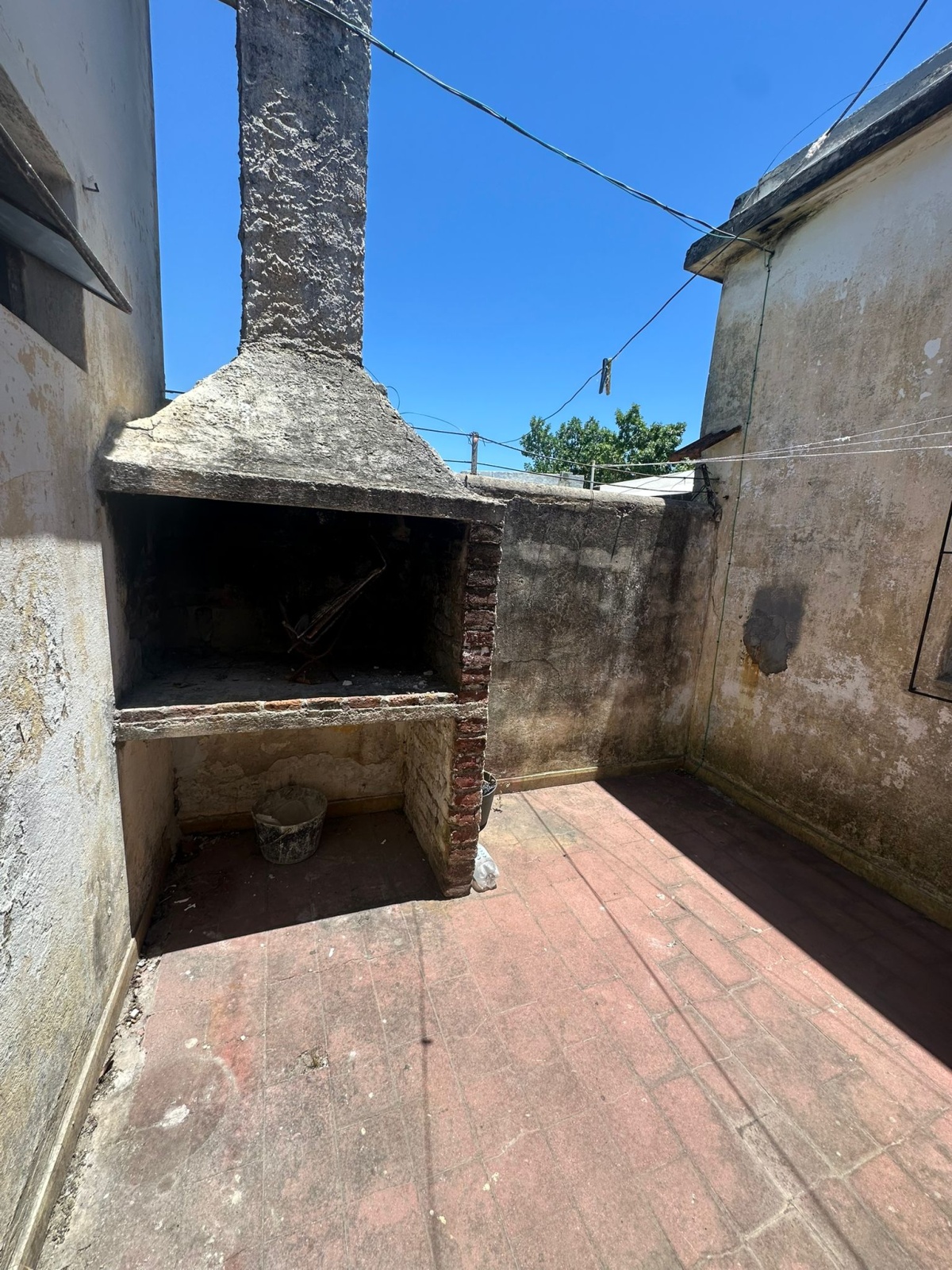Entrada al predio compartido, puerta de entrada a patio delantero exclusivo con mesa, living, cocina con bajo mesada, 2 dormitorios con ventanas, 2 patios chicos (uno para lavadero y el otro con parrillero).