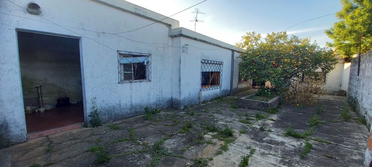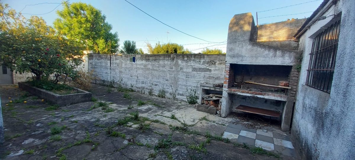 Casa al fondo: 2 dormitorios, estar- comedor, cocina, baño, galpón y patio con churrasquera.