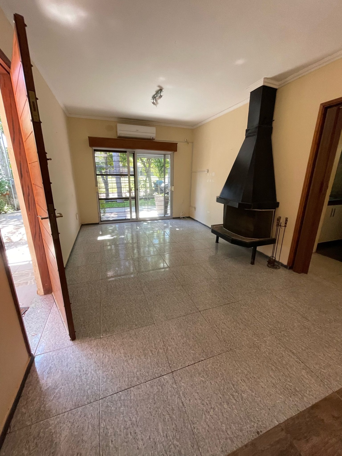 Living comedor con estufa a leña y A/A