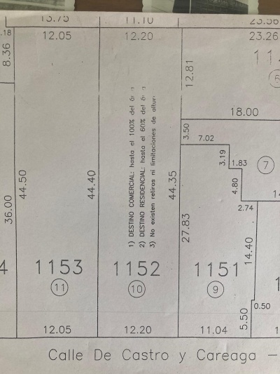 ¡Descubre el potencial de este terreno de 542 m2 ubicado en el corazón de la ciudad de Mercedes! Con un frente de 12,20 m y un fondo de 44,35 m, este lote es ideal para múltiples propósitos, incluyendo la construcción de edificios de apartamentos que se ajustan a las ordenanzas municipales.