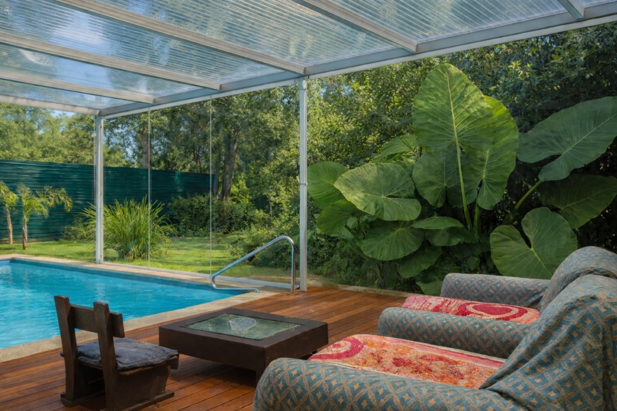 Piscina climatizada con cascada terapeutica, con opcion de disfrutar de ese espacio abierto o cerrado gracias al cerramiento perfectamente pensado y confeccionado.