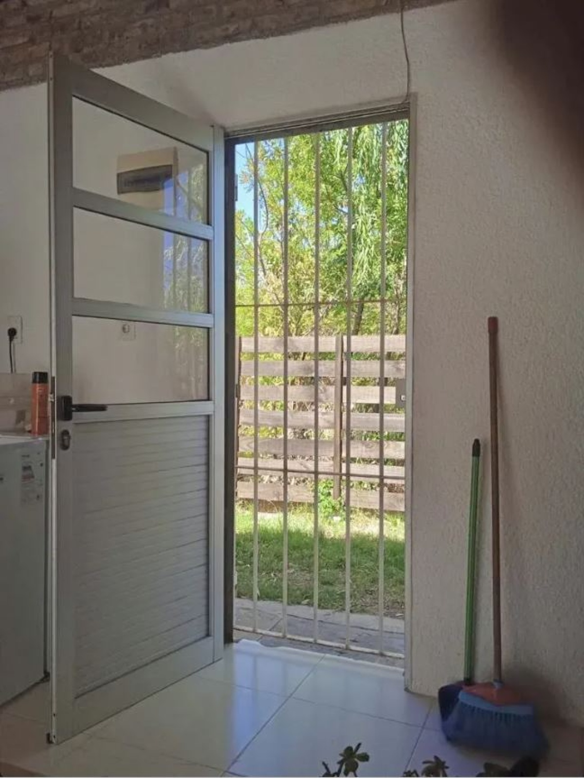 Patio cerrado con espacio para vehiculo.