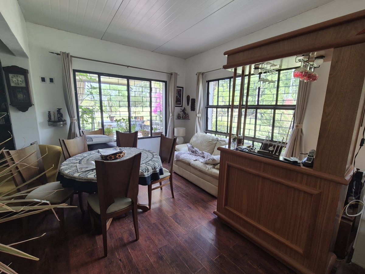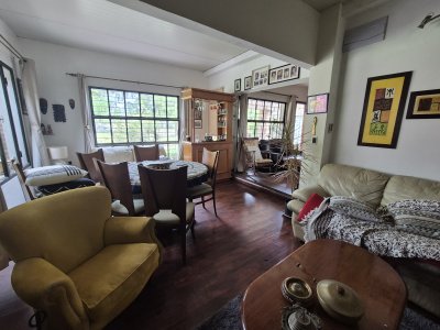 2 dormitorios de buen metraje con posibilidad de generar un tercer dormitorio de forma fácil. 2 baños completos, Cocina semi integrada con barra desayunadora, living comedor con estufa a leña.
